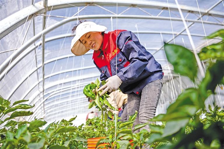 拉薩冬意漸濃,園區(qū)連片的溫室大棚,在冬日暖陽下熠熠生輝,宛如一個個孕育希望的“菜籃子”,豐富冬日市場供應(yīng)。走進(jìn)蔬菜大棚,棚內(nèi)暖意融融、綠意盎然,黃瓜、西紅柿、青椒等各類蔬菜均已進(jìn)入成熟期,長勢十分喜人。眼下,正是大棚青椒采摘期,一壟壟、一株株青椒掛滿枝頭,工作人員三五成群忙著采摘,現(xiàn)場一派繁忙景象?!安烧嘟芬蛏险郏@樣才不會損傷植株?!痹诘┰銮闹笇?dǎo)下,工作人員很快完成了采摘工作,打包、稱重后,37袋青椒被整齊地擺放在一起,等待著裝車發(fā)貨。