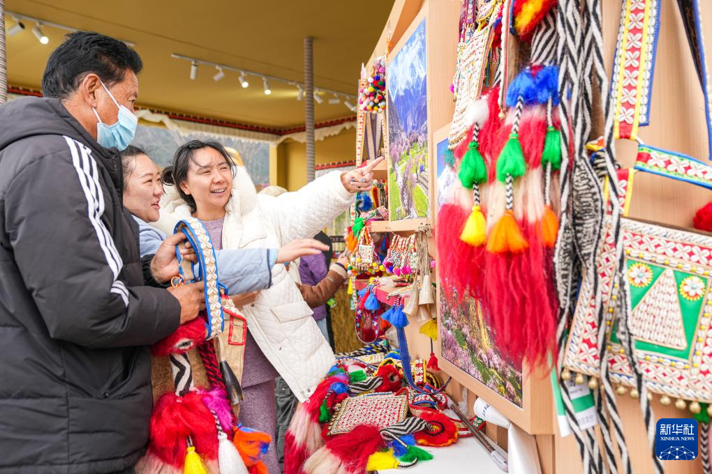 4月3日,游客在林芝市工布公園選購當(dāng)?shù)靥禺a(chǎn)。新華社記者 丁增尼達(dá) 攝