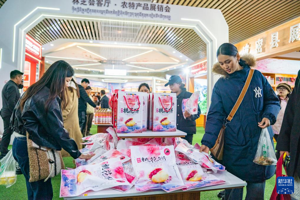 4月3日,游客在林芝市工布公園選購桃花餅。新華社記者 丁增尼達(dá) 攝