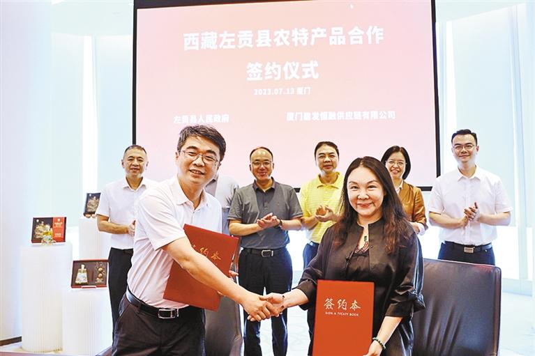 左貢縣政府與廈門(mén)建發(fā)恒融簽訂特色農(nóng)產(chǎn)品戰(zhàn)略合作協(xié)議。圖/文 記者 貢秋曲措
