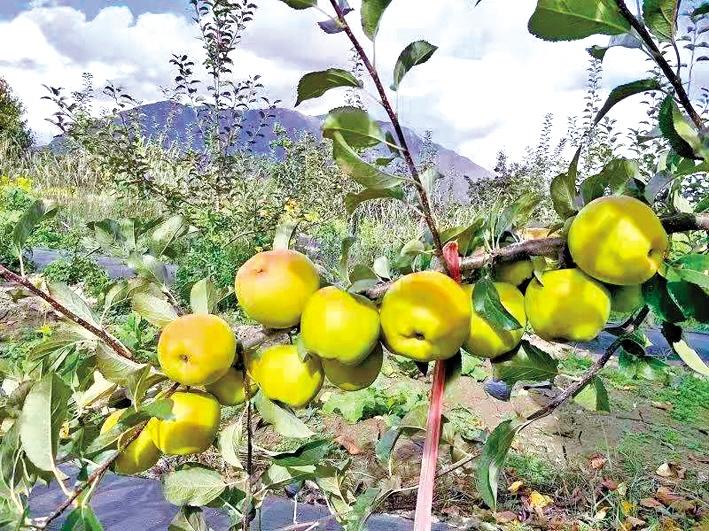 林芝農(nóng)墾嘎瑪農(nóng)業(yè)有限公司果園里結(jié)出的蘋(píng)果。 圖片由格桑群培提供