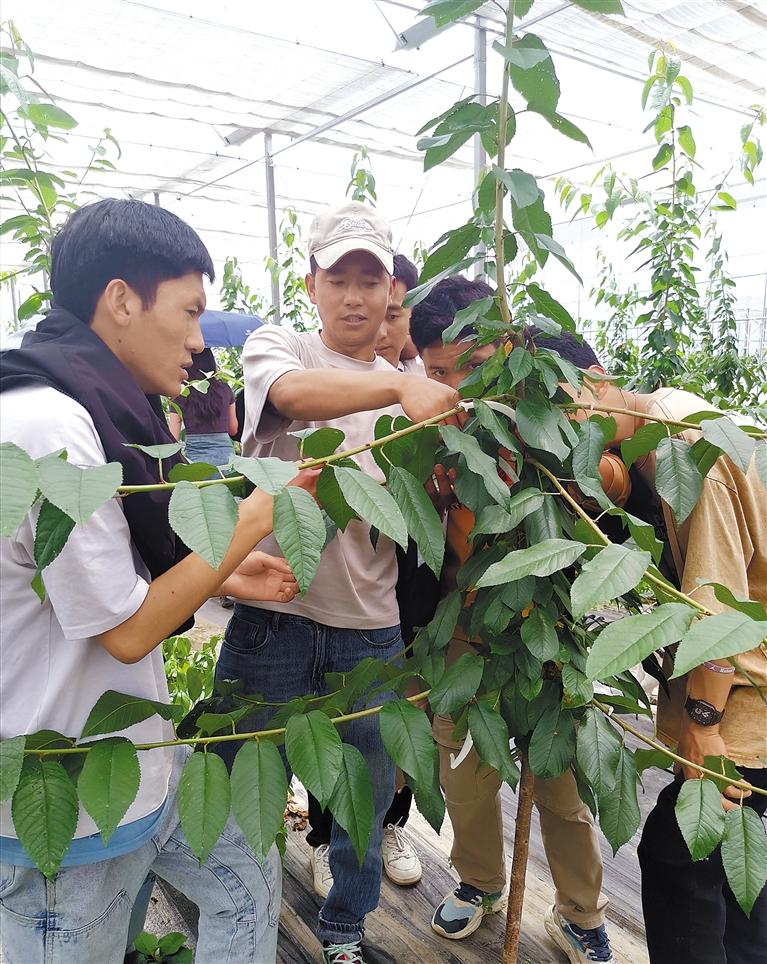 剛進(jìn)入公司時(shí),格桑群培還是農(nóng)業(yè)領(lǐng)域的“小白”。為了打好基礎(chǔ),他跟著公司生產(chǎn)技術(shù)人員在果園里摸爬滾打,學(xué)習(xí)果樹(shù)栽培、修剪技術(shù)等。休息時(shí)間,別的同事在娛樂(lè)放松,他卻一頭扎進(jìn)技術(shù)資料里,如饑似渴地學(xué)習(xí)有關(guān)果樹(shù)標(biāo)準(zhǔn)化種植的知識(shí)?!肮麡?shù)栽培就像養(yǎng)育孩子,需要足夠的細(xì)心和耐心。”格桑群培常常這樣說(shuō),也一直這樣做。他不怕苦、不怕累,從最基層的臟活、累活干起,憑借自己的努力和上進(jìn),逐漸成長(zhǎng)為公司的技術(shù)骨干,如今已擔(dān)任公司生產(chǎn)技術(shù)部副部長(zhǎng)。