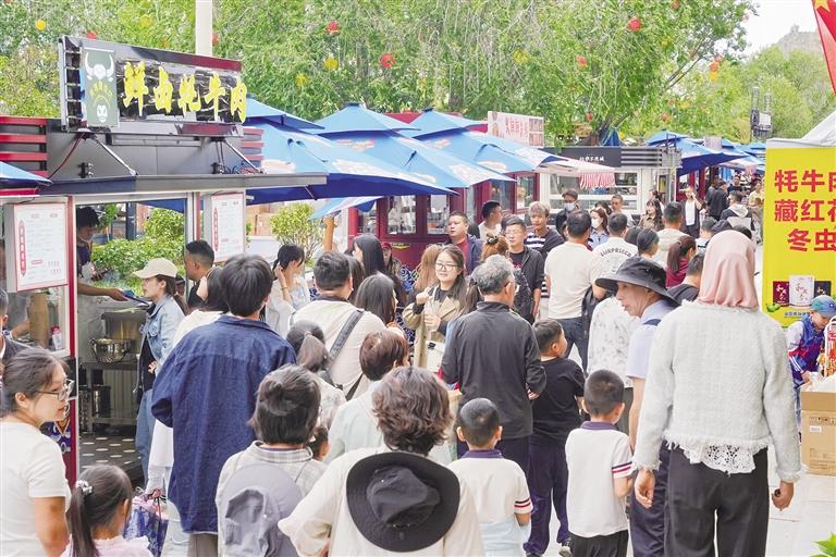 “拉薩不夜城”位于宇拓路的核心地段,銜接布達(dá)拉宮與大昭寺,全長(zhǎng)370米。該項(xiàng)目以“文旅商融合·新業(yè)態(tài)新場(chǎng)景”為發(fā)展定位,緊扣“潮流煙火氣”主題,采用對(duì)稱式街區(qū)布局,精心打造集“夜游、夜購(gòu)、夜宴、夜娛”于一體的夜間經(jīng)濟(jì)新地標(biāo)。營(yíng)業(yè)時(shí)間為7月15日至10月31日每日10:00-24:00,設(shè)有169個(gè)經(jīng)營(yíng)點(diǎn)位,涵蓋創(chuàng)意集裝箱、定制餐車、特色經(jīng)營(yíng)屋及開(kāi)放式攤位,引入西藏非遺精品、特色文創(chuàng)產(chǎn)品、特色燒烤、高原精釀啤酒、潮玩互動(dòng)等多元化業(yè)態(tài)。