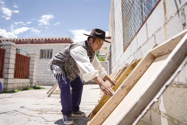 8月13日,記者來到尼木縣普松鄉(xiāng)曲水村的一個(gè)院落,58歲的斯曲正在窗邊埋頭雕刻,刻刀飛轉(zhuǎn)游走間,精致的花紋在木板上慢慢展現(xiàn),很快雕刻作品便初具雛形。作為普松雕刻第六代傳承人,斯曲自12歲起就在爺爺和爸爸的教導(dǎo)下開始學(xué)習(xí)這門手藝,如今的他早已成為普松雕刻自治區(qū)級非物質(zhì)文化遺產(chǎn)代表性傳承人。斯曲介紹,普松雕刻步驟煩瑣、工具講究,根據(jù)圖案復(fù)雜程度不同,耗時(shí)從6小時(shí)到3個(gè)月不等,十分考驗(yàn)雕刻者的耐心。