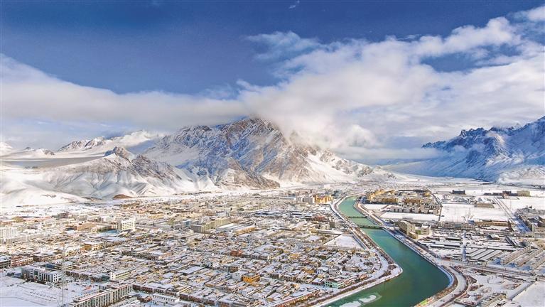 圖為阿里地區(qū)獅泉河鎮(zhèn)鳥(niǎo)瞰圖(資料圖片)。記者 洛桑旦增 達(dá)珍 永青 攝