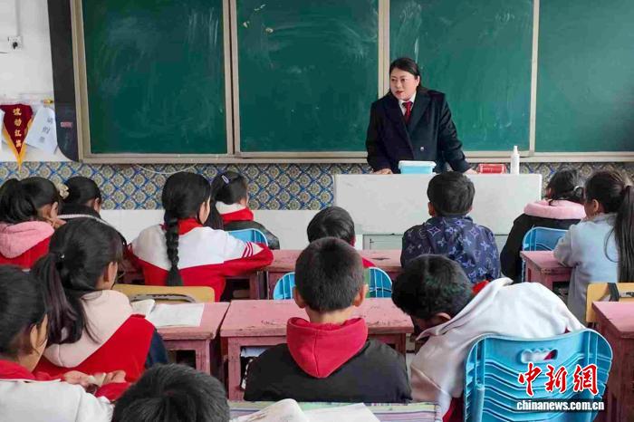 圖為2025年4月,全國政協(xié)委員、西藏墨脫縣人民法院綜合審判庭庭長白瑪玉珍在墨脫縣格當鄉(xiāng)小學(xué)為孩子們上法治課。(受訪者供圖)