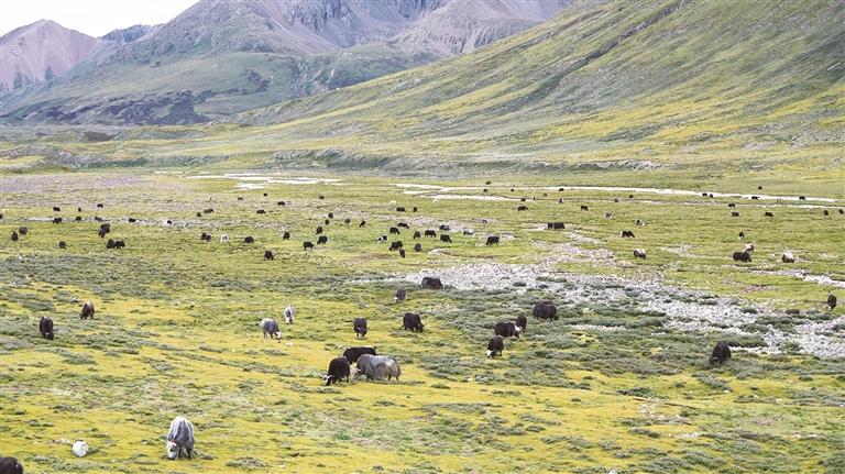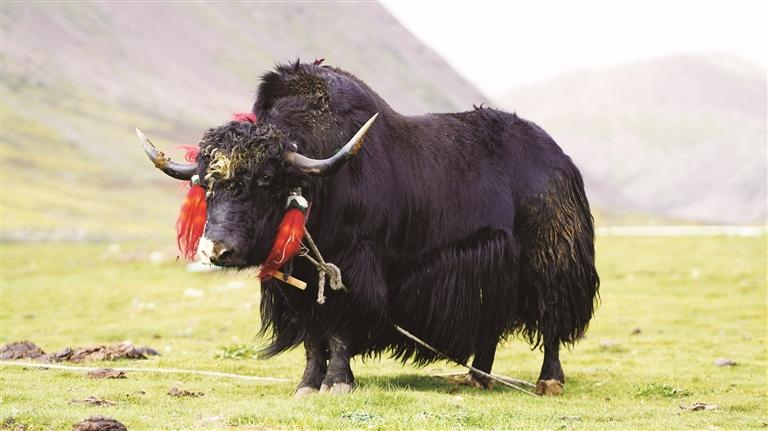 草地上的墨竹牦牛。