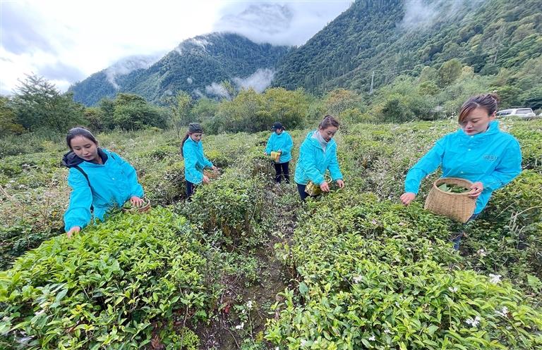 圖為林芝市易貢茶場的員工正在茶田間采茶。西藏日報記者 白瑪澤旺 攝