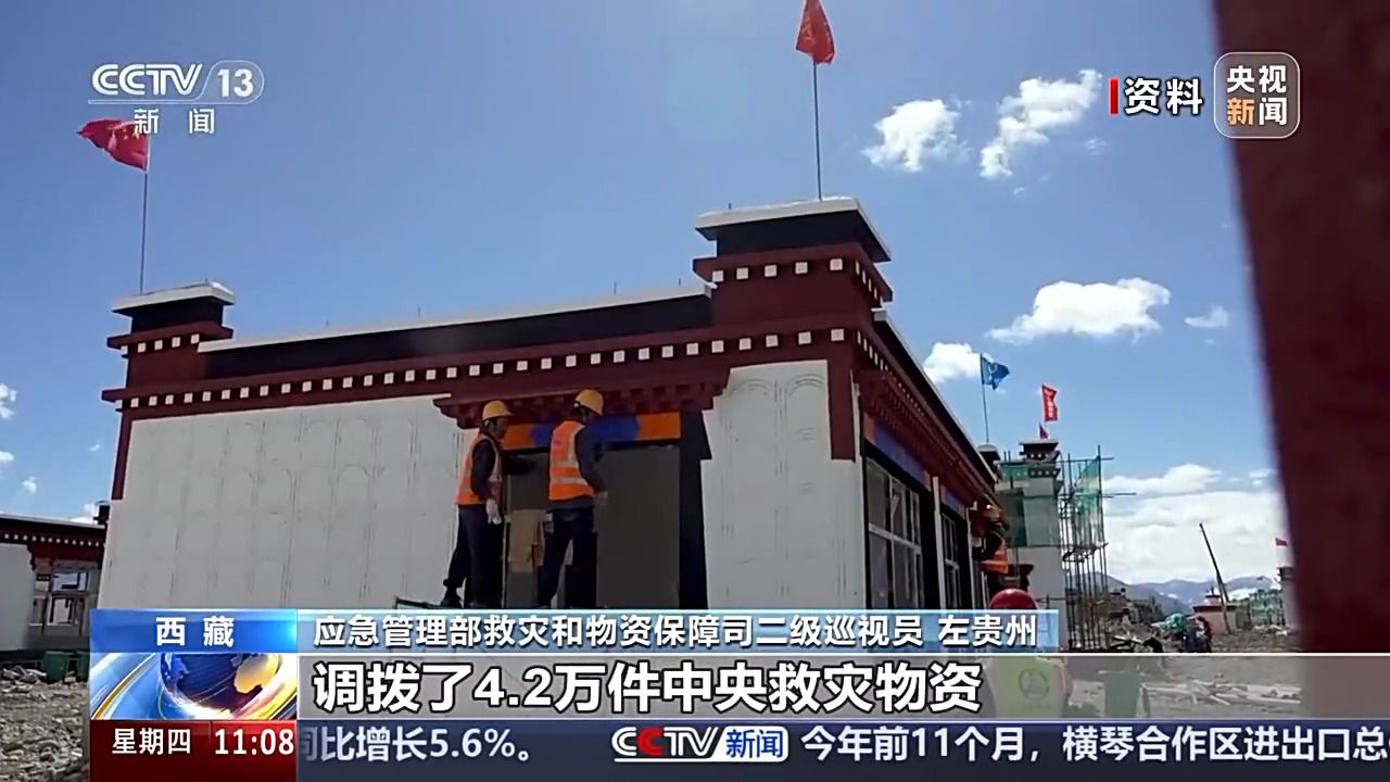 應(yīng)急管理部救災(zāi)和物資保障司二級(jí)巡視員 左貴州:針對(duì)定日地震,國(guó)家防減救災(zāi)委協(xié)調(diào)下?lián)芰?4億中央救災(zāi)資金,調(diào)撥了4.2萬(wàn)件中央救災(zāi)物資,并啟動(dòng)了應(yīng)急物資保障政社協(xié)同機(jī)制,調(diào)撥一大批生活類(lèi)的物資,確保受災(zāi)群眾盡快恢復(fù)家園、溫暖過(guò)冬。