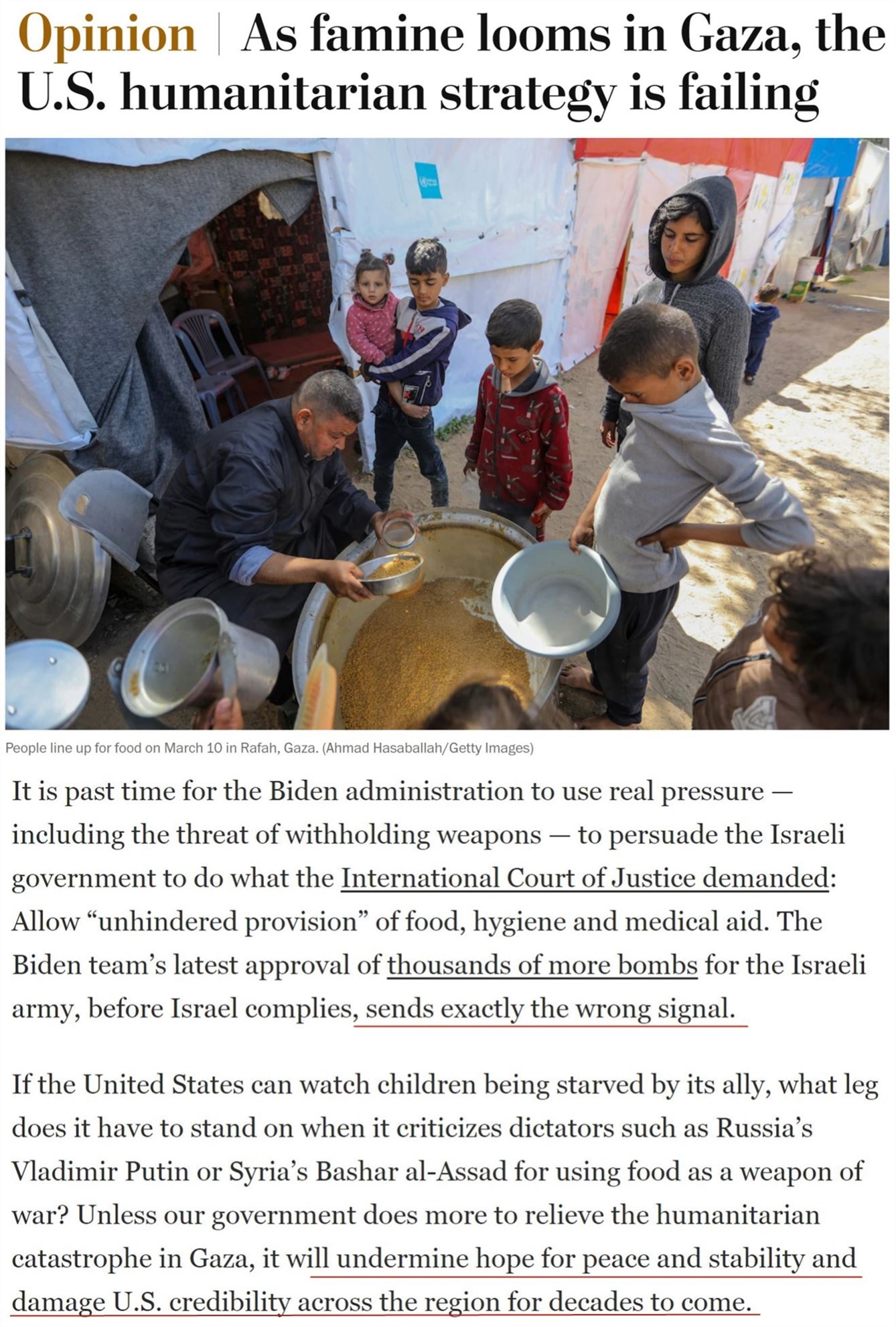 《華盛頓郵報(bào)》日前發(fā)文指出,隨著加沙地帶瀕臨饑荒,美國(guó)的“人道主義戰(zhàn)略”正在失敗。