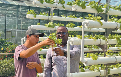 中國援多米尼克農(nóng)業(yè)技術合作項目始于2005年,目前已開展至第八期。項目引進了多個高附加值農(nóng)作物品種,促進了多米尼克農(nóng)業(yè)產(chǎn)業(yè)升級。圖為中多兩國農(nóng)業(yè)專家在觀察水培系統(tǒng)種苗生長情況。