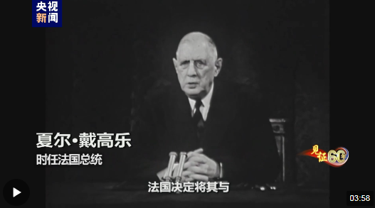 時任法國總統(tǒng) 夏爾·戴高樂:“法蘭西共和國決定將其與中華人民共和國的關系提升到正常的外交關系層面?!?/p>