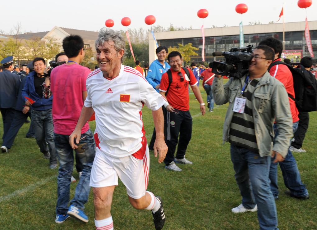 2011年10月7日,前中國國家男子足球隊主教練米盧故地重游,在沈陽和他當年的“戰(zhàn)友”、弟子共同慶祝中國足球隊世界杯出線十周年。2001年10月7日,米盧率領中國國家隊在沈陽五里河體育場以1比0戰(zhàn)勝阿曼隊,提前兩輪獲得韓日世界杯入場券,圓了中國足球44年的世界杯夢想。新華社記者李鋼攝