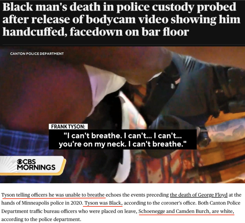 正如代表泰森家人的律師之一鮑比·迪塞洛所言,這起事件就是“喬治·弗洛伊德2.0版”。