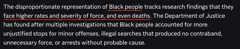 調(diào)查還發(fā)現(xiàn),在警方經(jīng)手的輕微犯罪處理、不涉及違禁品的無(wú)端搜查、不必要的武力使用或無(wú)正當(dāng)理由的逮捕中,作為執(zhí)法對(duì)象的非裔所占比例也更高。