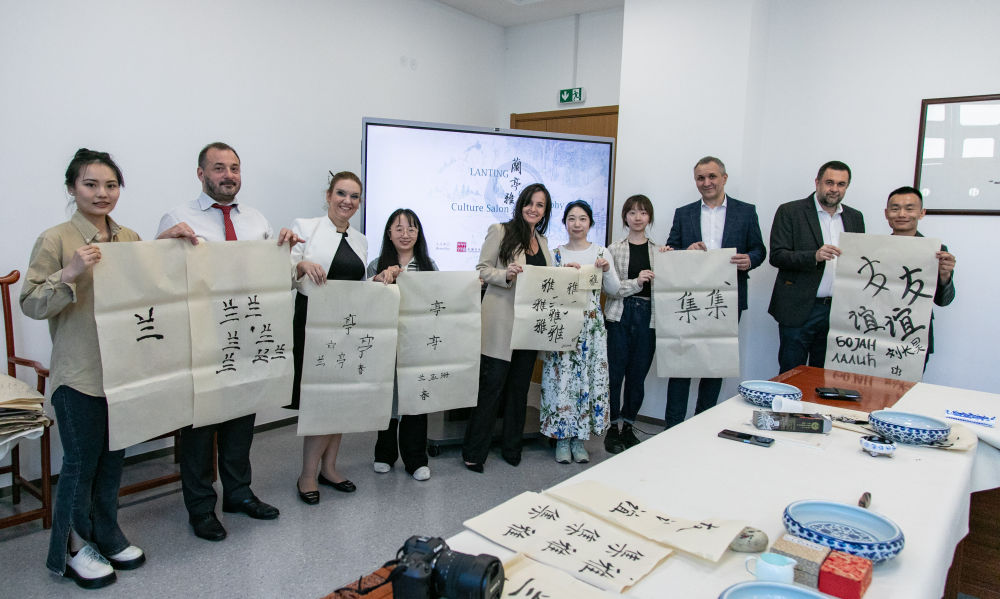 2024年4月11日,在貝爾格萊德中國文化中心舉辦的“蘭亭雅集——書法文化體驗(yàn)”活動(dòng)。