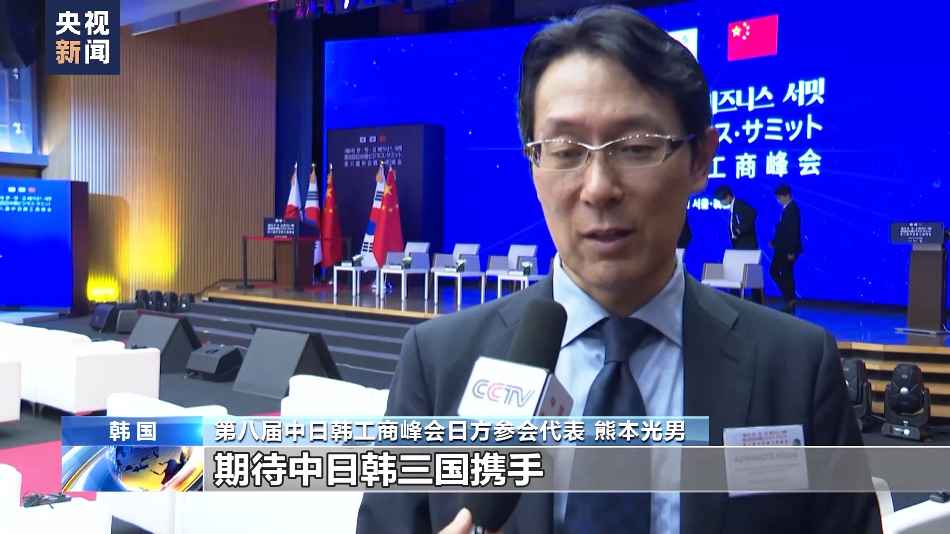 第八屆中日韓工商峰會日方參會代表 熊本光男:期待三國在各自的優(yōu)勢產業(yè)加強合作,期待中日韓三國攜手,共同提升包括歐美、東南亞市場在內的國際貿易份額。