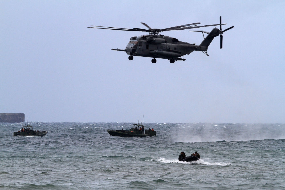 2013年9月20日,在菲律賓甲米地省,一架美軍CH-53E軍用直升機運載美國和菲律賓士兵參加演習(xí)。新華社發(fā)(魯埃勒·烏馬利攝)