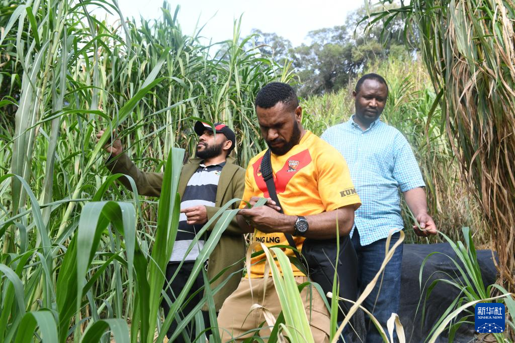 2024年3月28日,在位于福州的福建農林大學,來自盧旺達和巴布亞新幾內亞的學生在“國際菌草苑”內查看菌草長勢。新華社記者 林善傳 攝