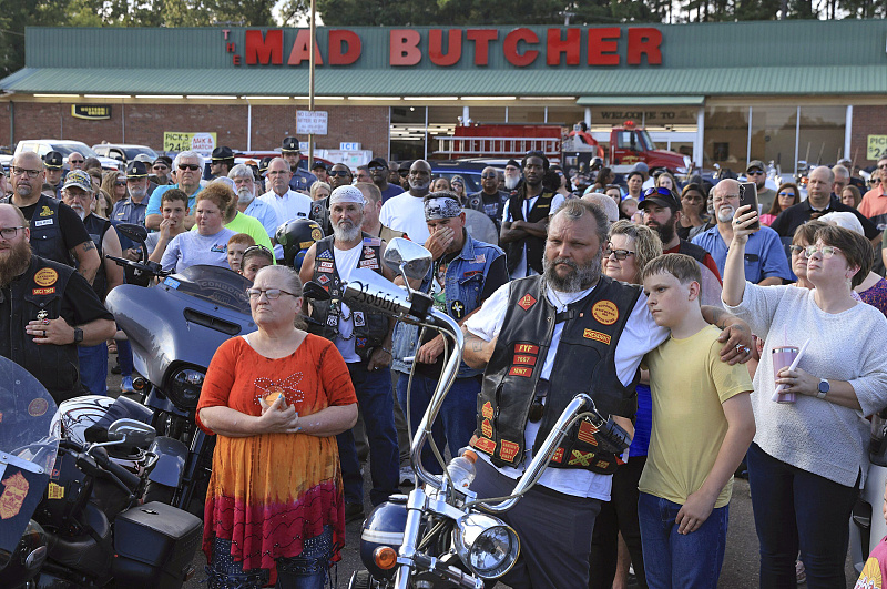 23日,人們聚集在雜貨店外,紀(jì)念槍擊案中的受害者。