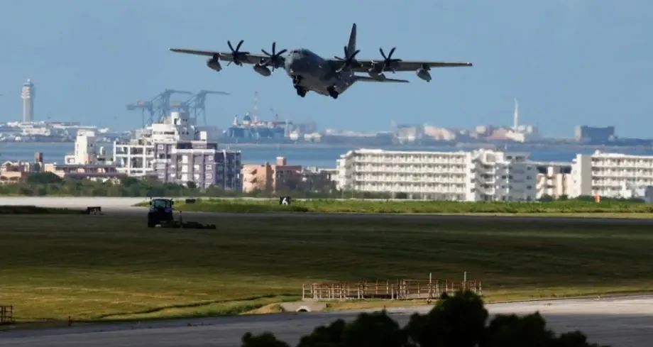 美軍運(yùn)輸機(jī)從沖繩嘉手納基地起飛。圖/路透社