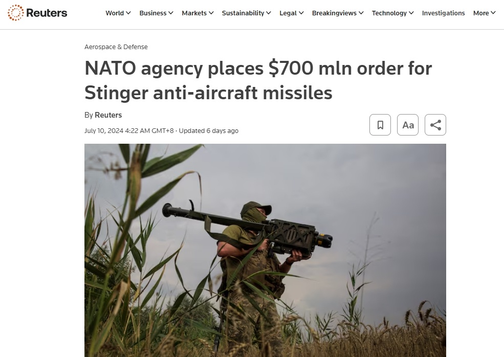 本月早些時(shí)候,北約宣布已經(jīng)以多個(gè)成員國的名義訂購了價(jià)值近7億美元的“毒刺”肩扛式單兵防空導(dǎo)彈。這款導(dǎo)彈也是雷神制造。