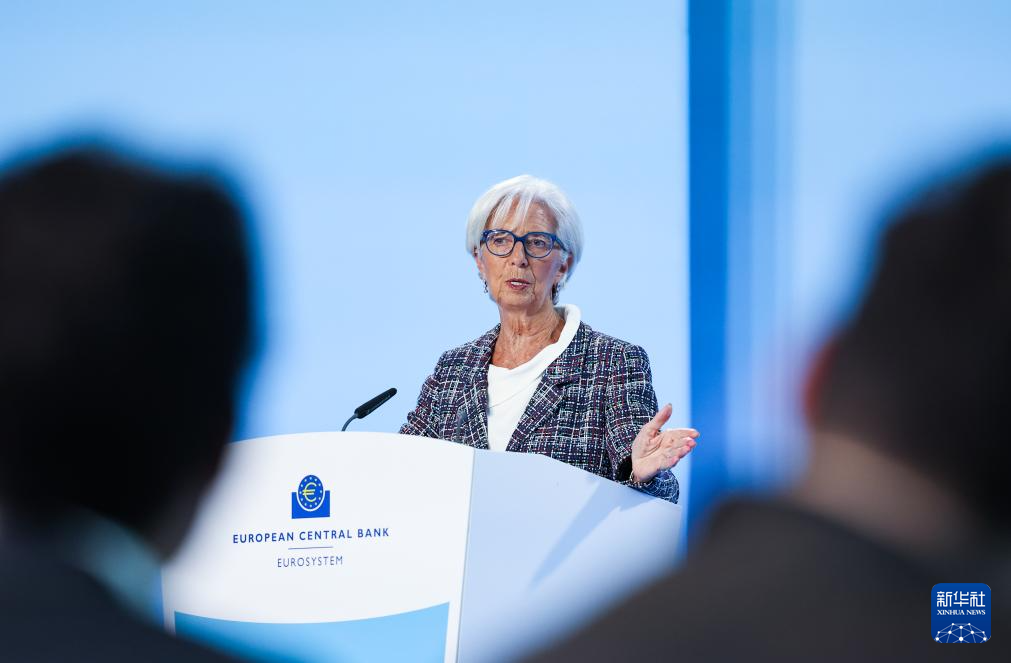 7月18日,歐洲中央銀行行長拉加德在德國法蘭克福歐洲中央銀行總部舉行的新聞發(fā)布會上講話。新華社記者 張帆 攝