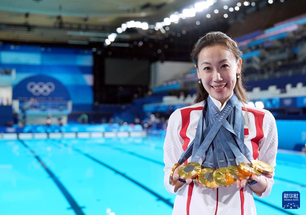 8月10日,中國隊教練張曉歡在頒獎儀式后。新華社記者 薛宇舸 攝