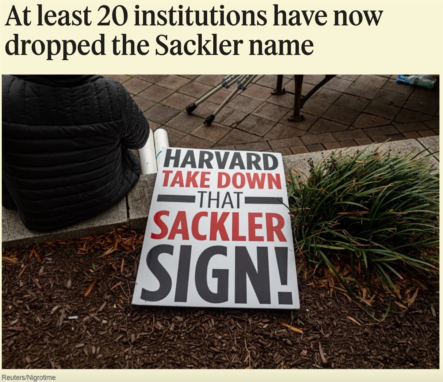南·戈?duì)柖『推渌棺h者的努力取得了一定程度的勝利,眾多大學(xué)、博物館和藝術(shù)機(jī)構(gòu)紛紛和薩克勒家族劃清界限。
