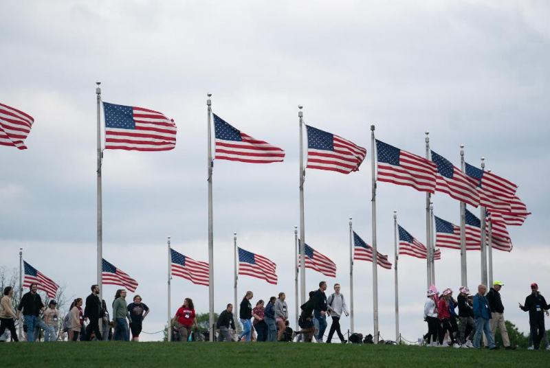 4月25日,游客在美國(guó)首都華盛頓的國(guó)家廣場(chǎng)游覽。新華社記者劉杰攝