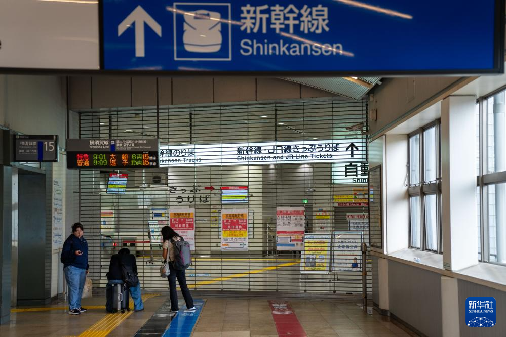 8月16日,乘客站在關(guān)閉的日本東京品川新干線站點(diǎn)旁。新華社記者 張笑宇 攝