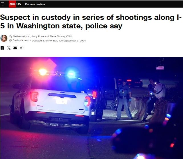 報道稱,當?shù)貢r間3日,華盛頓州巡警隊長羅恩·米德在新聞記者會上稱,已有四起槍擊案的受害者確認了嫌疑人所乘車輛。
