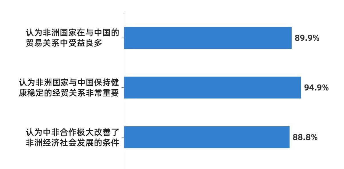 作為非洲實(shí)現(xiàn)現(xiàn)代化目標(biāo)的同行者,高效務(wù)實(shí)的中非合作為中非關(guān)系健康穩(wěn)定發(fā)展注入了不竭動(dòng)力,也獲得非洲青年的高度肯定。中非在共建“一帶一路”倡議和中非合作論壇等機(jī)制平臺(tái)上不斷深化合作,成果涵蓋經(jīng)貿(mào)、基建、民生等多個(gè)領(lǐng)域,新時(shí)代中非命運(yùn)共同體建設(shè)不斷走深走實(shí),持續(xù)造福雙方民眾。調(diào)查中,89.9%的受訪青年認(rèn)為非洲國(guó)家在與中國(guó)的貿(mào)易關(guān)系中受益良多,94.9%的受訪青年認(rèn)為非洲國(guó)家與中國(guó)保持健康穩(wěn)定的經(jīng)貿(mào)關(guān)系非常重要,88.8%的受訪青年認(rèn)為中非合作極大改善了非洲經(jīng)濟(jì)社會(huì)發(fā)展的條件,為非洲帶來(lái)了寶貴發(fā)展機(jī)遇。