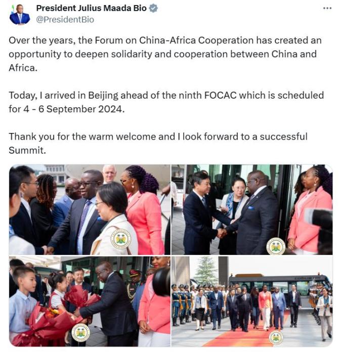 圖片來源:塞拉利昂總統(tǒng)比奧社交媒體賬號(hào)截圖