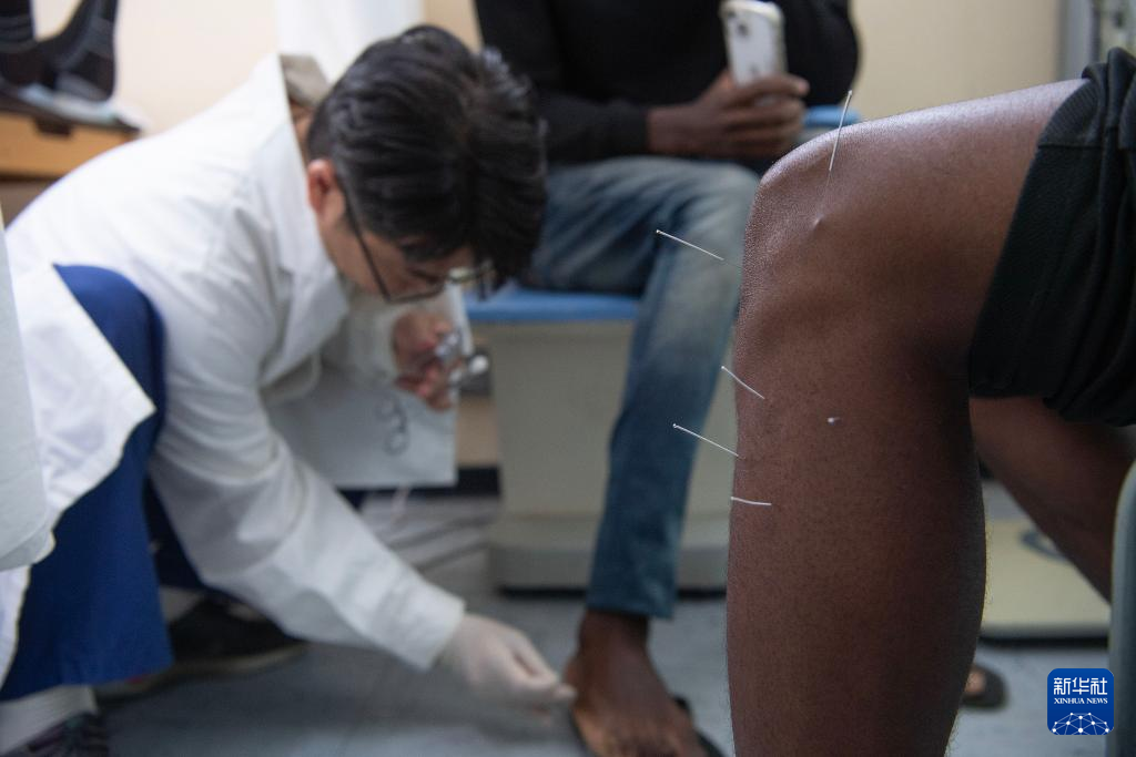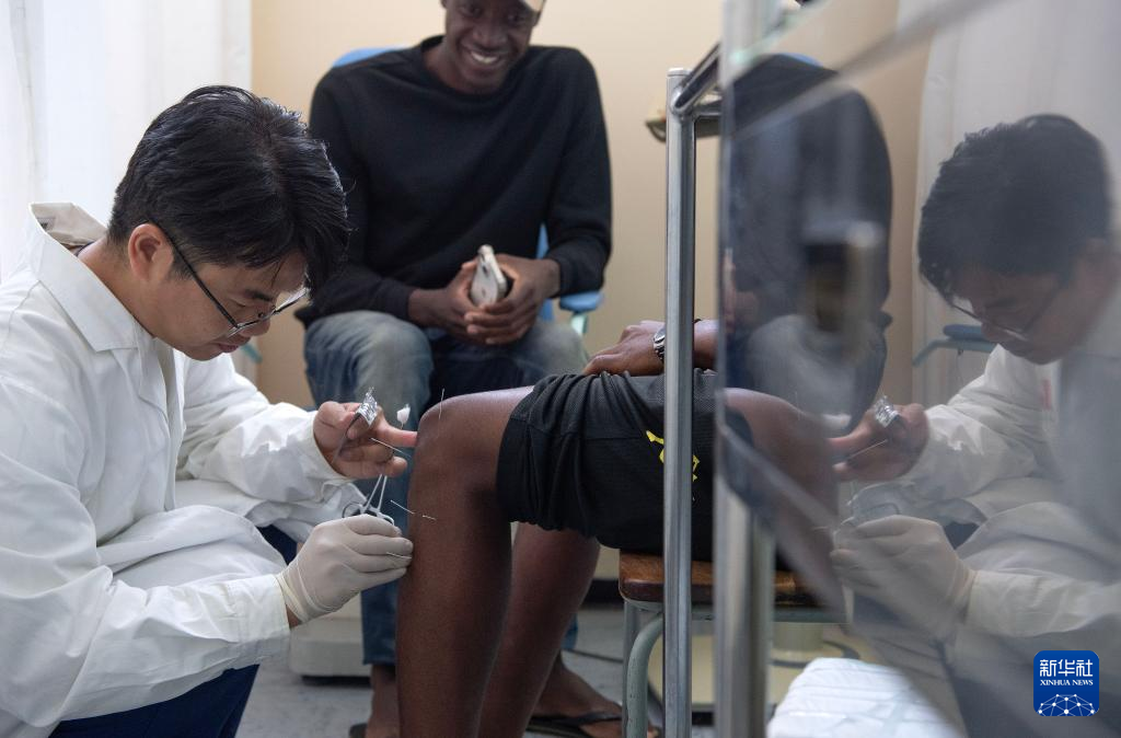 9月9日,在納米比亞首都溫得和克的卡圖圖拉醫(yī)院,醫(yī)療隊隊員在中醫(yī)診室為患者進行針灸治療。新華社記者 陳誠 攝