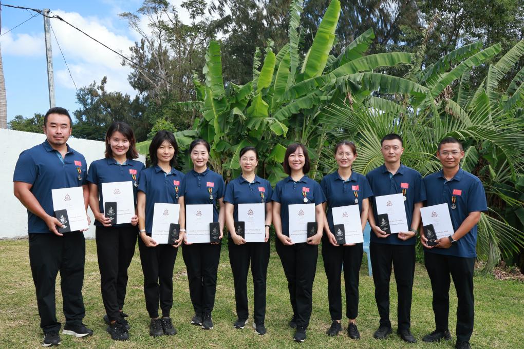 7月30日,在瓦努阿圖首都維拉港,中國(guó)援瓦醫(yī)療隊(duì)隊(duì)員手持證書合影。瓦努阿圖總統(tǒng)武羅巴拉武當(dāng)天向中國(guó)醫(yī)療隊(duì)9名隊(duì)員頒發(fā)“國(guó)家勛章”,以表彰他們?yōu)樘嵘哚t(yī)療衛(wèi)生服務(wù)水平、鞏固瓦中兩國(guó)醫(yī)療衛(wèi)生合作作出的卓越貢獻(xiàn)。新華社發(fā)(中國(guó)援瓦醫(yī)療隊(duì)供圖)