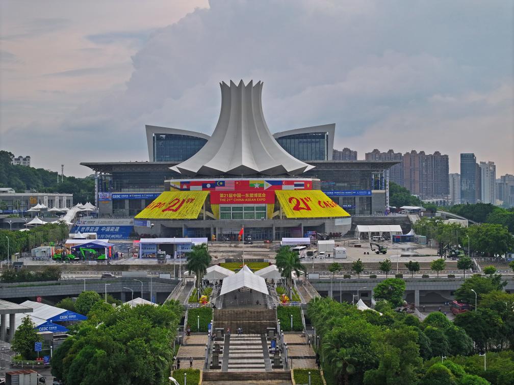 這是2024年9月20日拍攝的南寧國(guó)際會(huì)展中心(無(wú)人機(jī)照片)。9月24日至28日,第21屆中國(guó)—東盟博覽會(huì)將在廣西南寧舉辦。新華社記者 周華 攝
