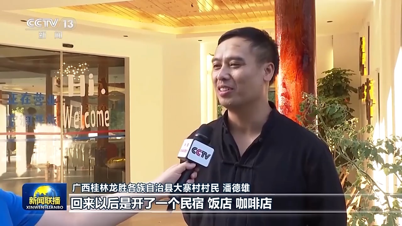 廣西桂林龍勝各族自治縣大寨村村民 潘德雄:回來(lái)以后開(kāi)了一個(gè)民宿、飯店、咖啡店。各民族的一些兄弟也都到我們這邊做生意,大家都相處得非常好。