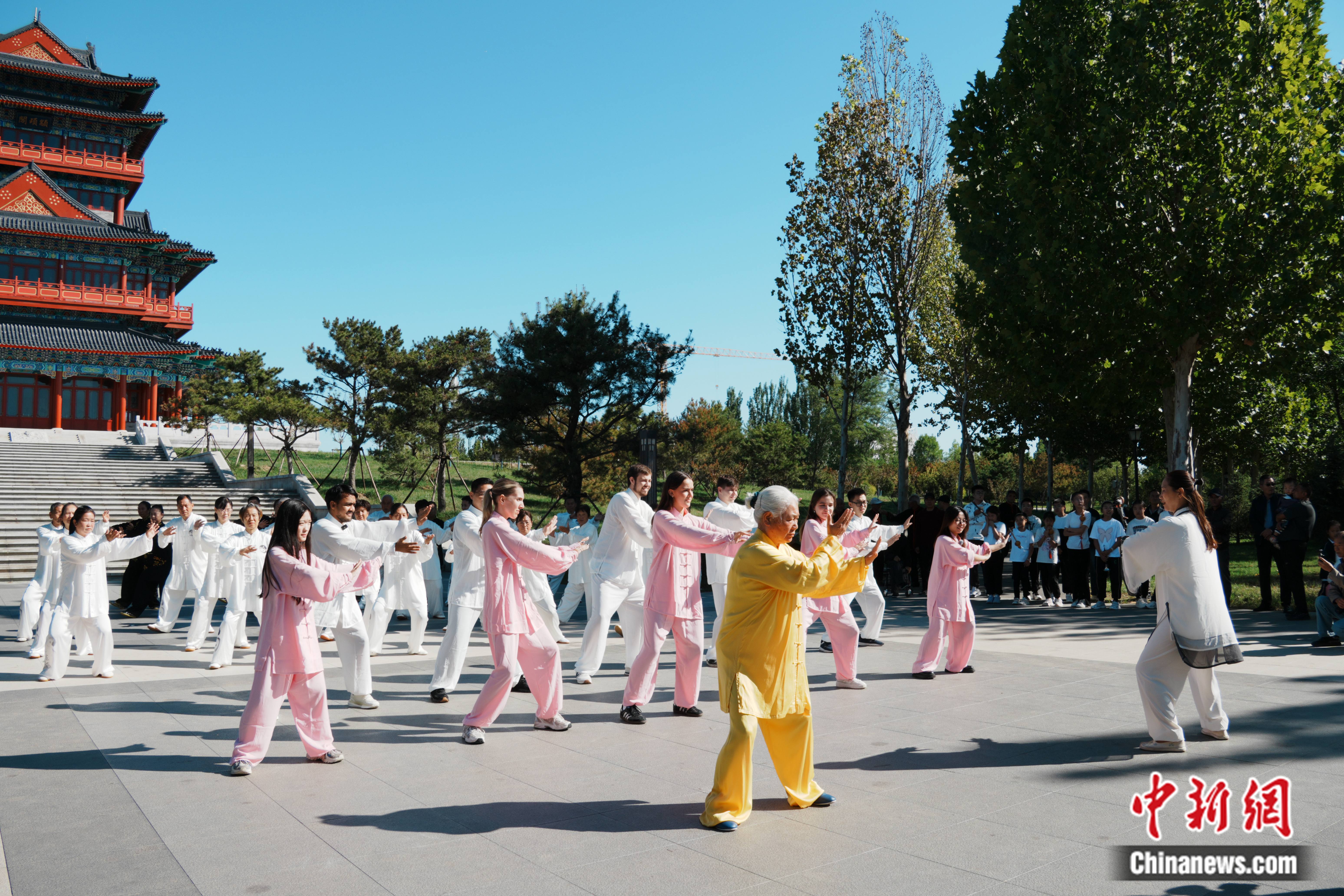 在三天行程中的最后一天,換上太極服的“洋弟子”們來到顓頊公園“拜師習武”,在顓頊閣前,短拳、太極拳等豐富多彩的武術表演給“洋弟子”們帶來了一點“小小的震撼”,贏得他們陣陣掌聲。