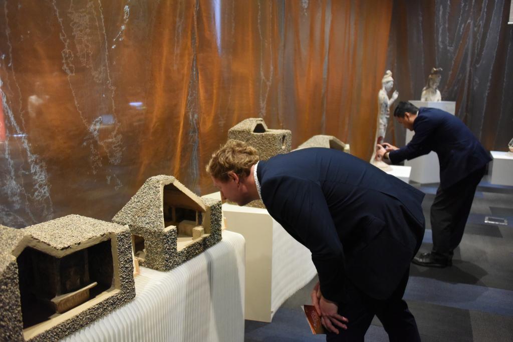 新中友協(xié)奧克蘭分會副主席利奧·德·格拉夫在VR展臺體驗數(shù)字化還原的莫高窟第285窟后,表達了自己“要去一次敦煌”的愿望。新西蘭國會議員珍妮·薩萊薩穿過莫高窟第3窟的復制洞窟,感嘆“真切體會到美與文化之間的相互關聯(lián)”。
