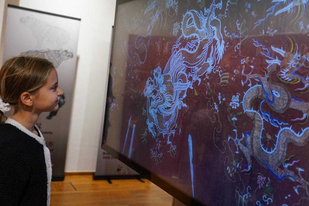 展覽通過人工智能、增強現(xiàn)實、原真采集等技術手段,從文物紋樣的符號價值、科技價值、審美價值、傳承價值、時代價值五個維度,引領觀眾探尋匠心工藝背后的中國文化意蘊?!皵?shù)字文化展是一種生動有趣的媒介,我們可以直觀看到正在中國進行的關于考古和文物的各類研究。”布魯塞爾市民喬安娜·馬圭爾說。