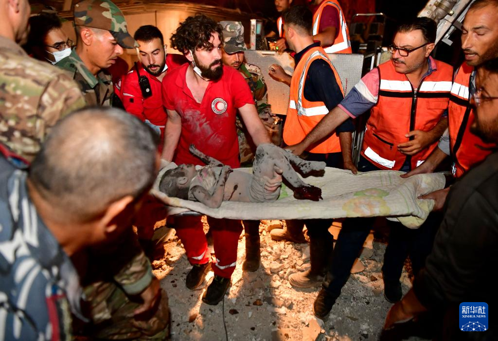 10月8日,在敘利亞首都大馬士革西部邁宰區(qū),救援人員救出襲擊中受傷的兒童。新華社發(fā)(阿馬爾·薩法爾賈拉尼攝)