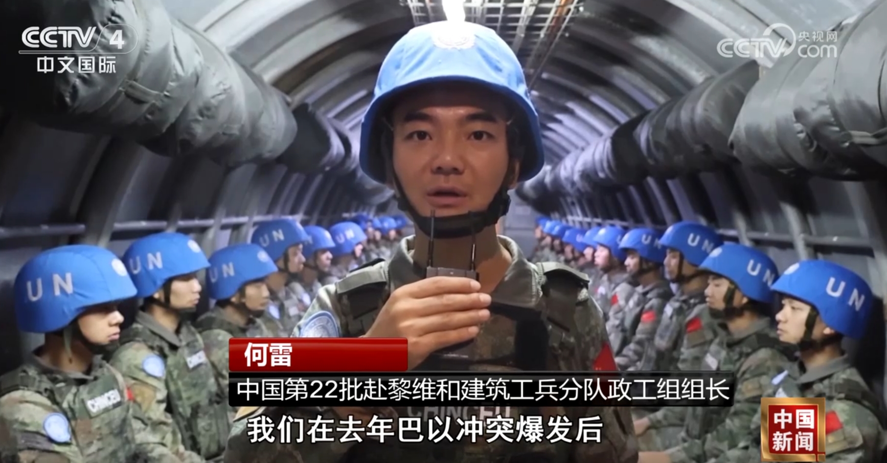 中國(guó)第22批赴黎維和建筑工兵分隊(duì)政工組組長(zhǎng)何雷稱:“我現(xiàn)在所處的位置是距離“藍(lán)線”僅6公里的中國(guó)維和營(yíng)區(qū)地下防空掩體。我們?cè)谌ツ臧鸵詻_突爆發(fā)后,頂著極大安全風(fēng)險(xiǎn)進(jìn)行輪換,執(zhí)行“藍(lán)線”工程施工、人道主義援助等維和任務(wù)。對(duì)于我們赴黎維和建筑工兵分隊(duì)來說,從來到這里的第一天起,警報(bào)聲、槍聲、炸彈聲等等都不絕于耳,火箭彈、無人機(jī)往來不斷,戰(zhàn)機(jī)時(shí)常在頭頂釋放音爆進(jìn)行威懾。距離我們營(yíng)區(qū)最近的爆炸點(diǎn)不足1公里,彈片砸落在營(yíng)區(qū),我們每名維和官兵無論是在執(zhí)行任務(wù)還是在營(yíng)區(qū),都要求全程穿戴防護(hù)裝具,隨時(shí)應(yīng)對(duì)可能發(fā)生的交火、恐怖襲擊等險(xiǎn)情。每次遇到險(xiǎn)情拉響防空警報(bào)后,無論在干什么,所有人員必須立即執(zhí)行預(yù)案,快速進(jìn)入掩體,等待下一步命令。此外,著眼于長(zhǎng)期依托地下掩體開展工作和生活的實(shí)際,我們?cè)诜揽昭隗w內(nèi)增設(shè)了戰(zhàn)備食品、醫(yī)療器材、通信設(shè)備、日常用品等6類1000余件防護(hù)保障物資,持續(xù)優(yōu)化改進(jìn)掩體的生活條件,在掩體出口增設(shè)鐵網(wǎng),預(yù)防無人機(jī)攻擊。截至目前,我們已經(jīng)在掩體連續(xù)度過了10余天,所有人員全部在崗,狀態(tài)良好?!?/p>