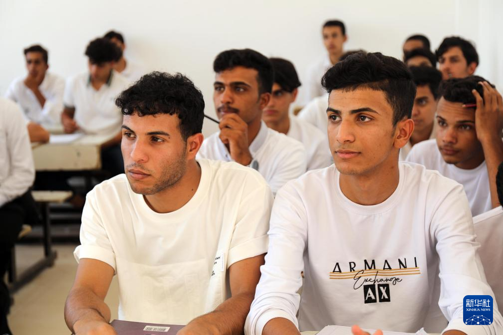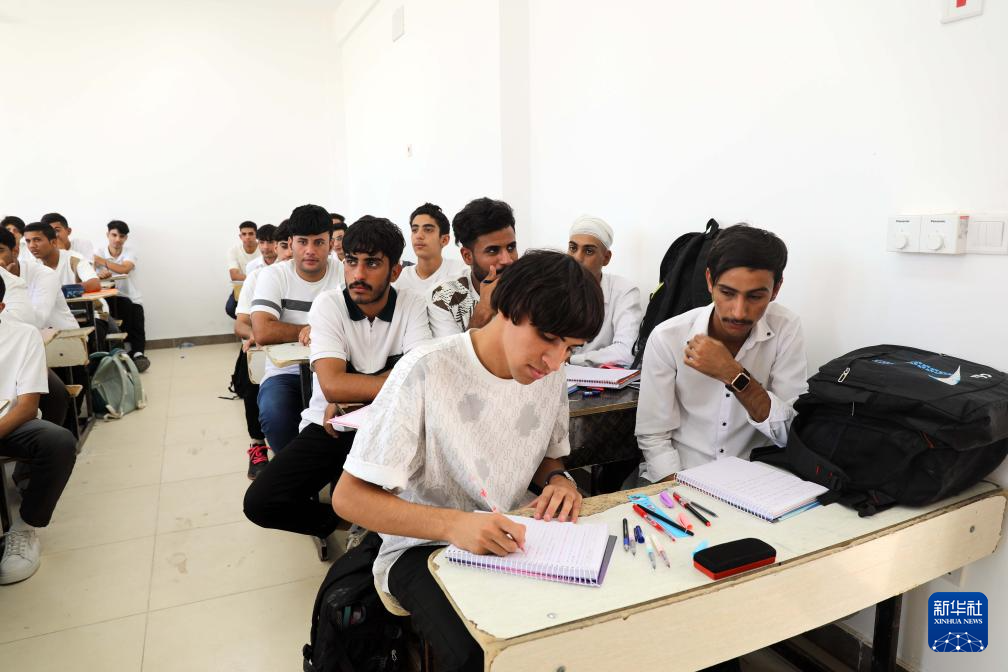 10月8日,當(dāng)?shù)貙W(xué)生在伊拉克穆薩納省一所中企承建示范學(xué)校內(nèi)上課。新華社發(fā)(哈利勒·達(dá)伍德攝)