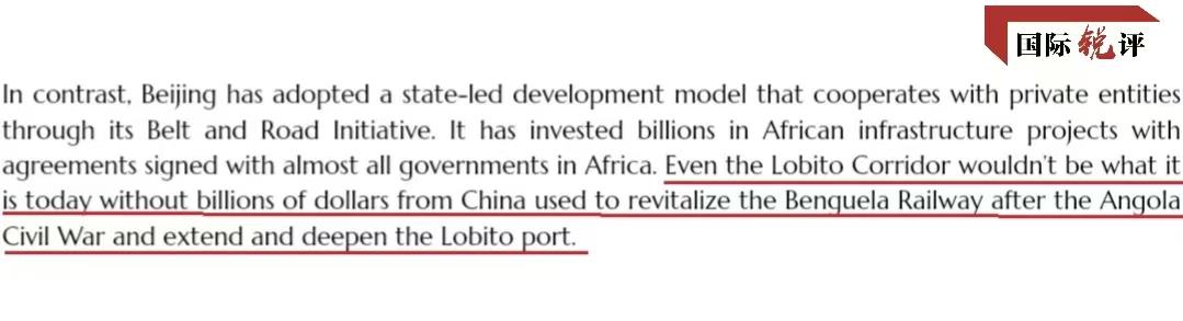 黎文濤認(rèn)為,美國(guó)試圖把“洛比托走廊”包裝成美歐為非洲基建作出的貢獻(xiàn),完全不符合事實(shí)。因?yàn)樗暮诵墓羌苤袊?guó)早已搭好,中國(guó)才是名副其實(shí)的最大貢獻(xiàn)者?!奥灞韧凶呃取惫倬W(wǎng)上也有這樣一段話:“如果沒有中國(guó)投入數(shù)十億美元重建本格拉鐵路、擴(kuò)建洛比托港口,‘洛比托走廊’就沒有當(dāng)今的模樣?!?/p>