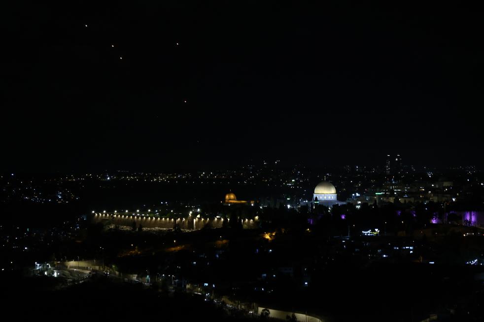 10月1日,伊朗發(fā)射的導(dǎo)彈從耶路撒冷上空飛過(guò)。新華社發(fā)(賈馬爾·阿瓦德攝)