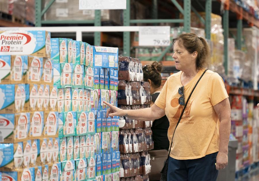 2024年7月11日,顧客在美國(guó)加利福尼亞州福斯特城一家超市購(gòu)物。新華社發(fā)(李建國(guó)攝)