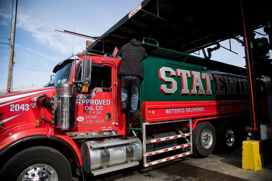 2022年3月8日,一輛運(yùn)油車(chē)駛過(guò)美國(guó)紐約街頭。新華社發(fā)(邁克爾·內(nèi)格爾攝)