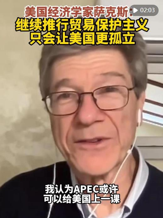 薩克斯表示,美國(guó)應(yīng)停止破壞性的貿(mào)易政策。美國(guó)慫恿其他國(guó)家停止與中國(guó)經(jīng)貿(mào)往來(lái),但很多國(guó)家并不跟風(fēng)。繼續(xù)推行貿(mào)易保護(hù)主義只會(huì)讓美國(guó)更孤立。(記者:鄭開(kāi)君、熊茂伶、胡友松;視頻:鄭開(kāi)君、刁慧琳)