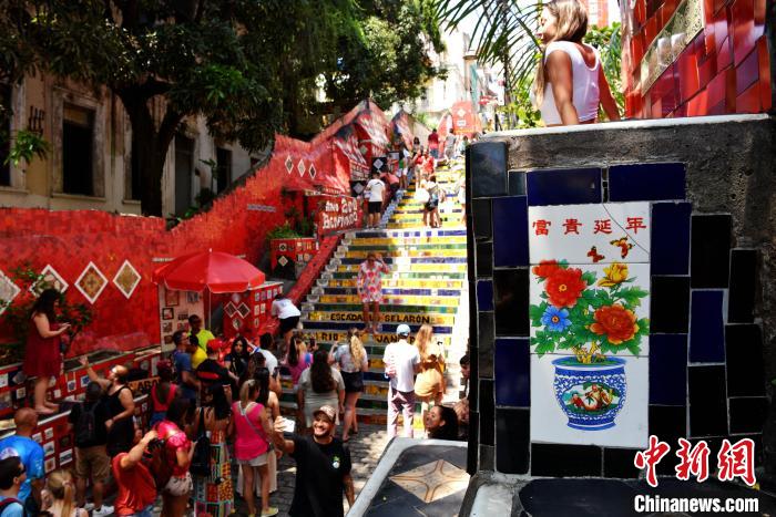 跟隨里約熱內盧共和國博物館研究員安德烈·安迪·安古洛,中新社記者來到里約熱內盧聞名遐邇的城市地標——塞拉隆階梯。這是由智利藝術家塞拉隆歷時20余年打造的“彩色階梯”。